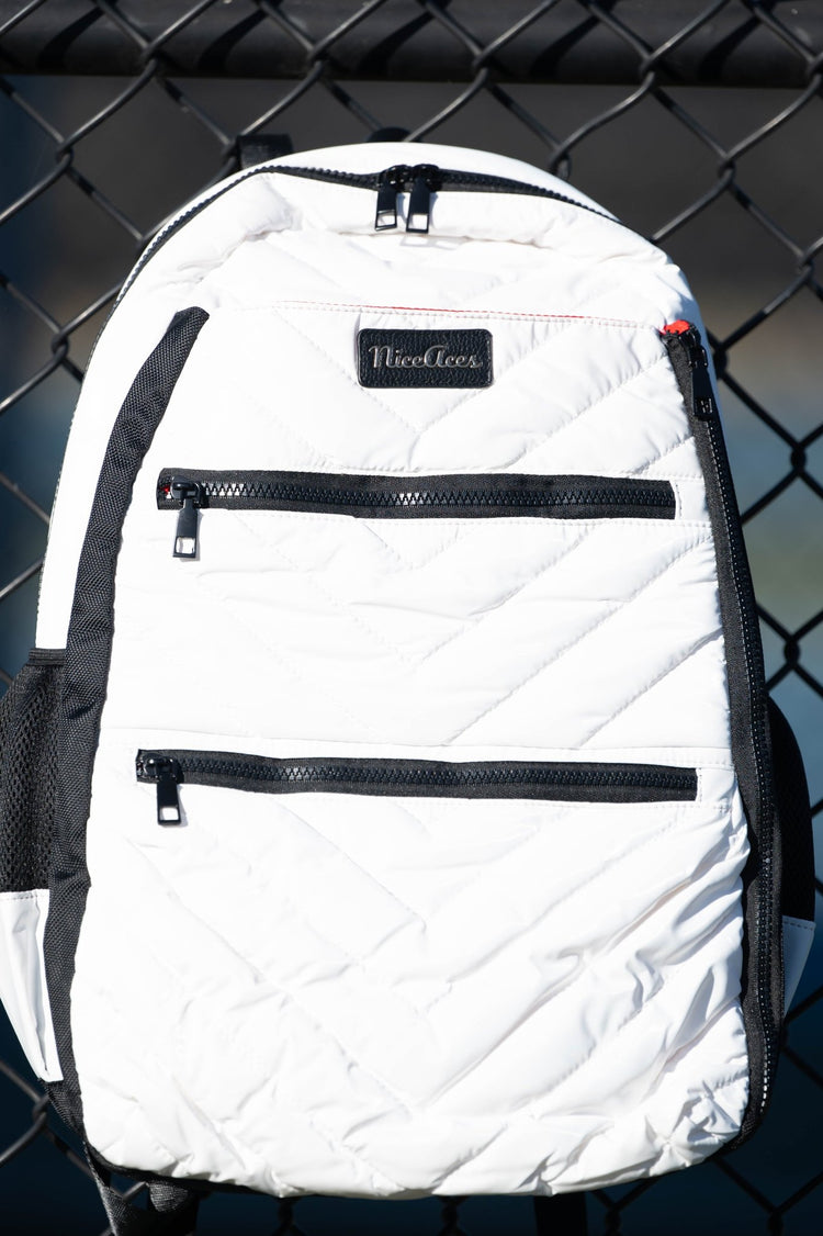 Made from high-quality, puffy nylon reminiscent of designer outerwear, the Emily is both waterproof and eye-catching. The sophisticated stitch pattern and glossy-to-matte color options make this backpack equally at home on the court or on the go.